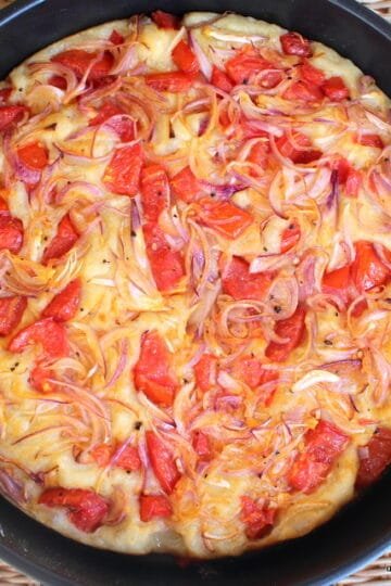 Βλάχικη παραδοσιακή νηστίσιμη ριζόπιτα με κρεμμύδι. Rice and onion traditional vlahiki pie.