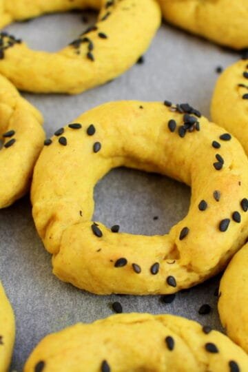Κρίθινα κριτσίνια με ελαιόλαδο και κουρκουμά. Kritsinia (breadsticks) with barley flour, olive oil and turmeric.