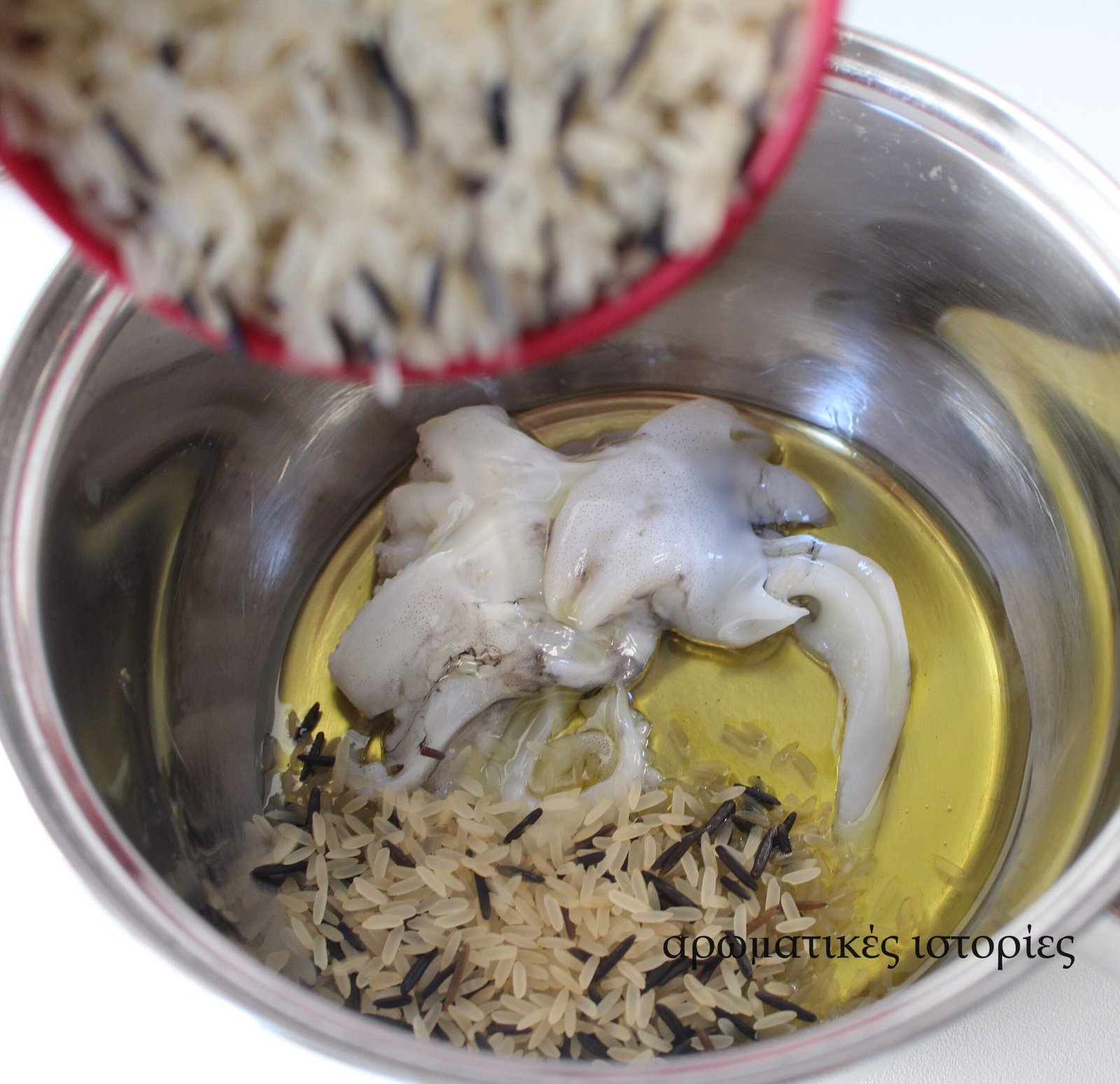 κίτρινο και άγριο ρύζι και το κεφαλάκι της σουπιάς