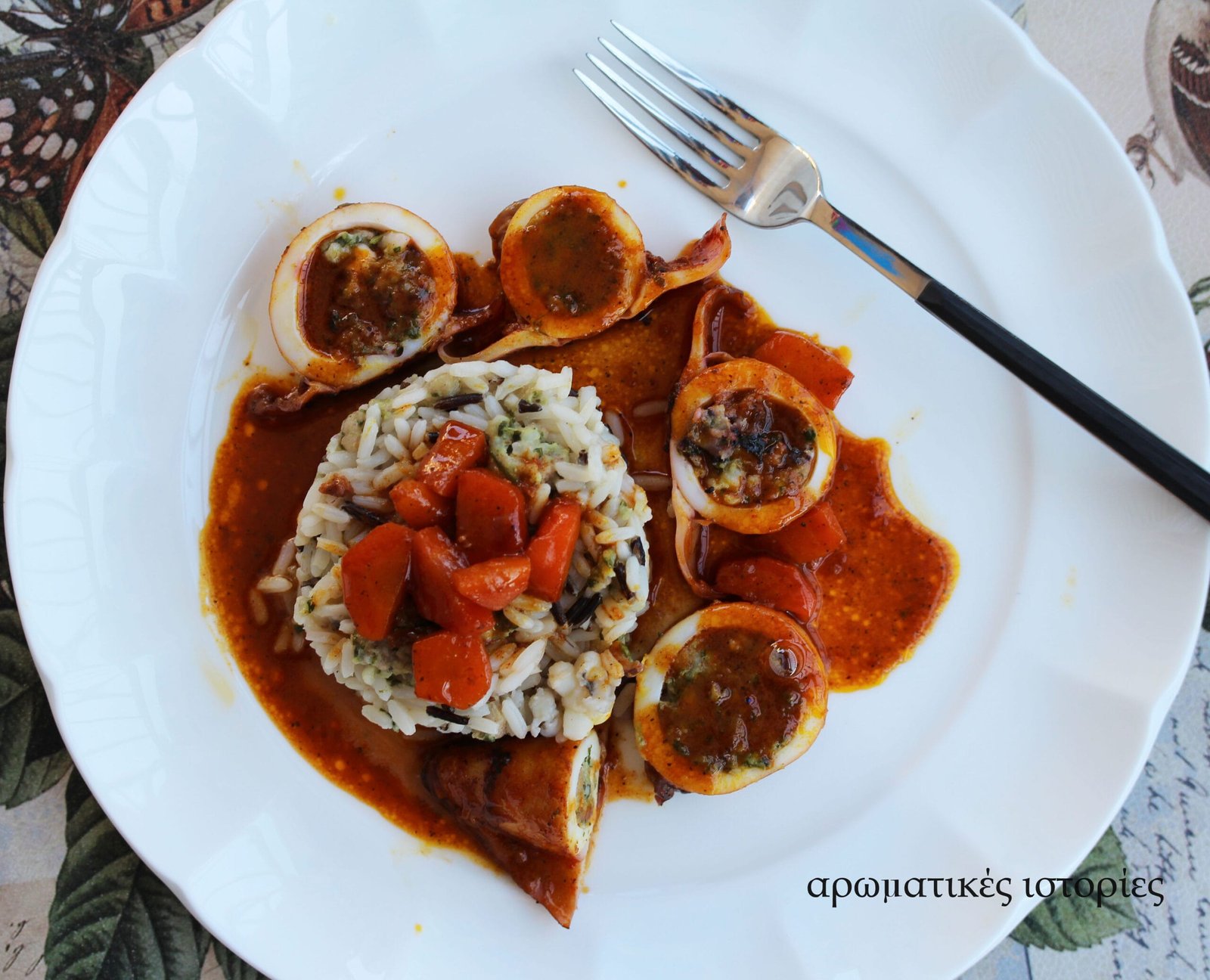 - Παράλληλα θα βράσω κίτρινο και άγριο ρύζι μαζί με το κεφαλάκι της σουπιάς και θα σερβίρω μαζί με φέτες από το γεμιστό καλαμάρι, τα καροτάκια και την πικάντικη σάλτσα.