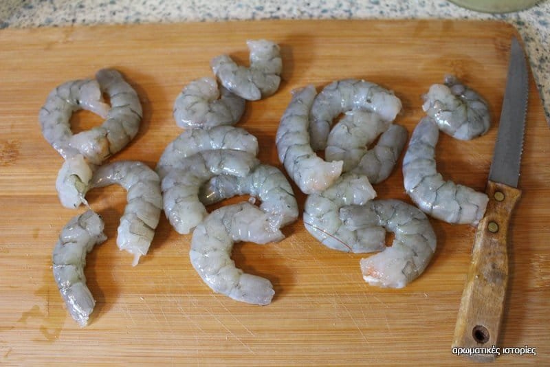 - Καθαρίζω το κέλυφος από τις γαρίδες και βγάζω το εντεράκι τους.