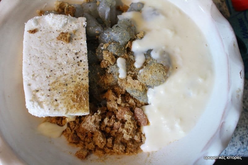 - Κόβω τις γαρίδες σε μικρά κομμάτια. Ανακατεύω όλα τα υλικά μαζί.