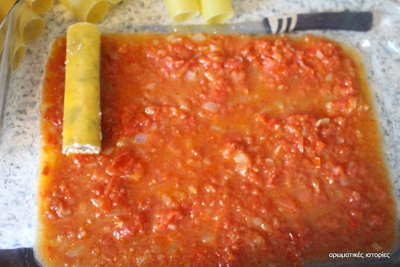 - Τα γεμισμένα κανελόνια να έχουν απόσταση μεταξύ τους