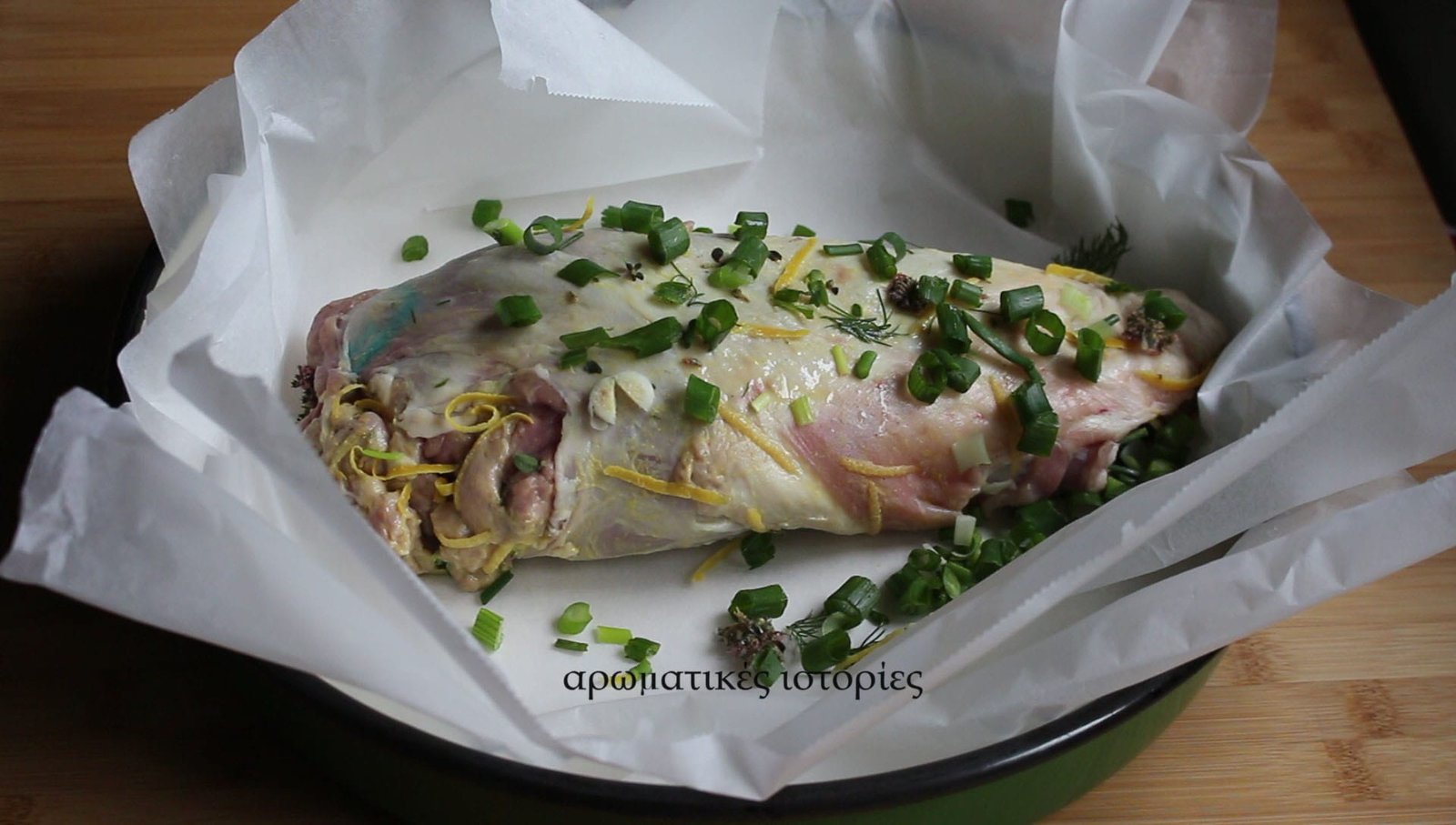 λεπτάΚατσικίσιο μπουτάκι ρολό με αρωματικά και γλυκοπατάτες