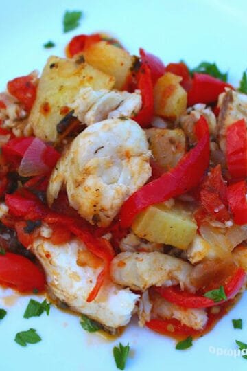 Ο δικός μου μπακαλιάρος πλακί, μαγειρέματα Σαντορίνης συνέχεια. My baked cod. Cooking in Santorini.