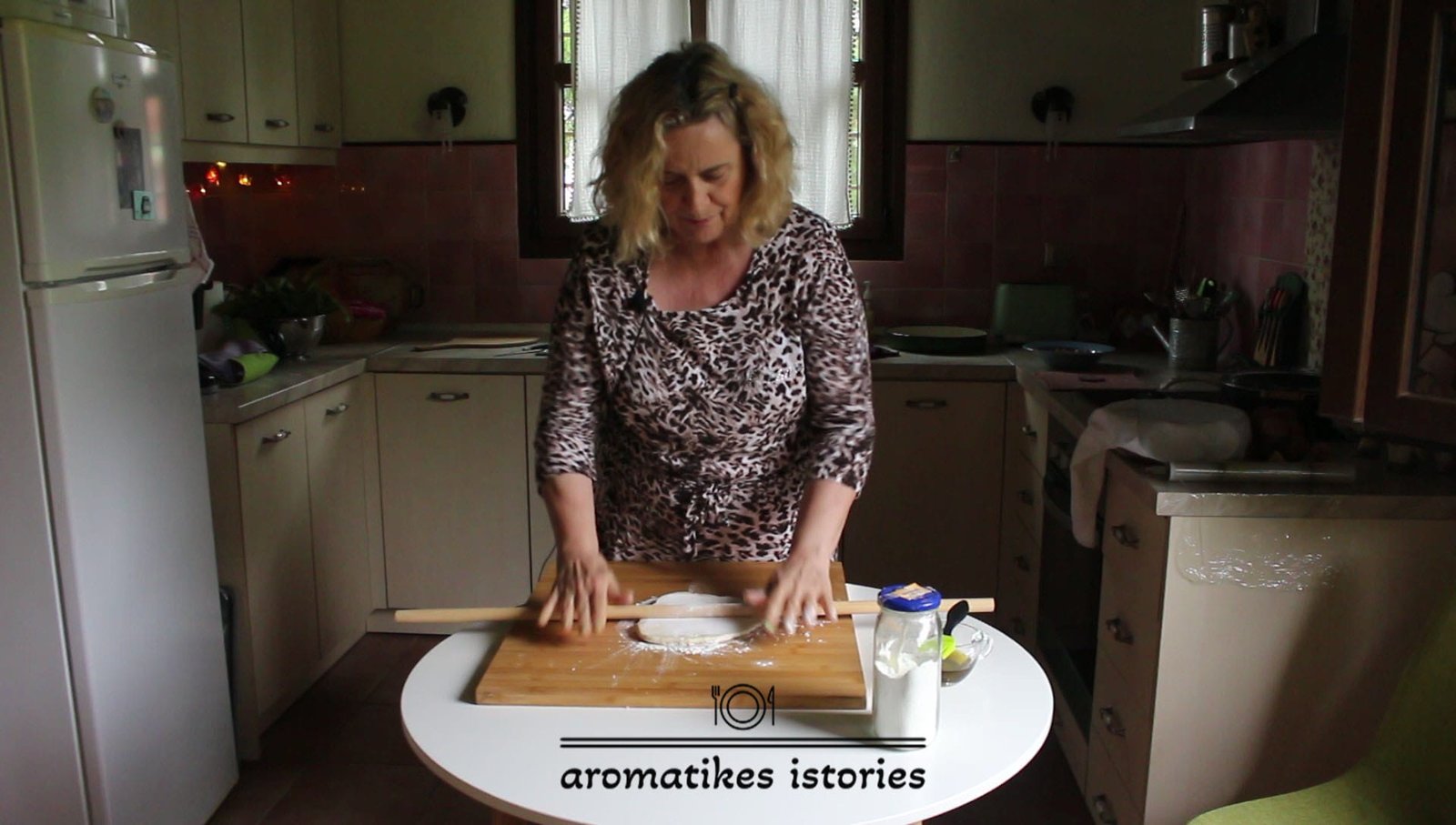 - Αφού ξεκουραστεί η ζύμη, ανοίγω το πρώτο φύλλο όσο μπορώ πιολεπτό το λαδώνω ελαφρά και το χαράζω στο σχήμα του ήλιου.