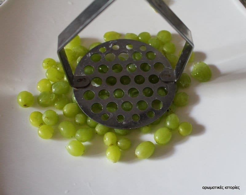 - Χωρίζω τις ρόγες από τα βλασταράκια τους και τις πατώ με μία πρέσα πουρέ για να βγάλουν τους χυμούς τους.