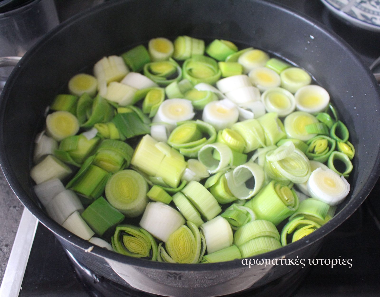 - Βάζω στο πλακερό νερό, βράζω τα πράσα 4 – 5΄ και τα στραγγίζω. Έτσι γίνονται πιο εύπεπτα.
