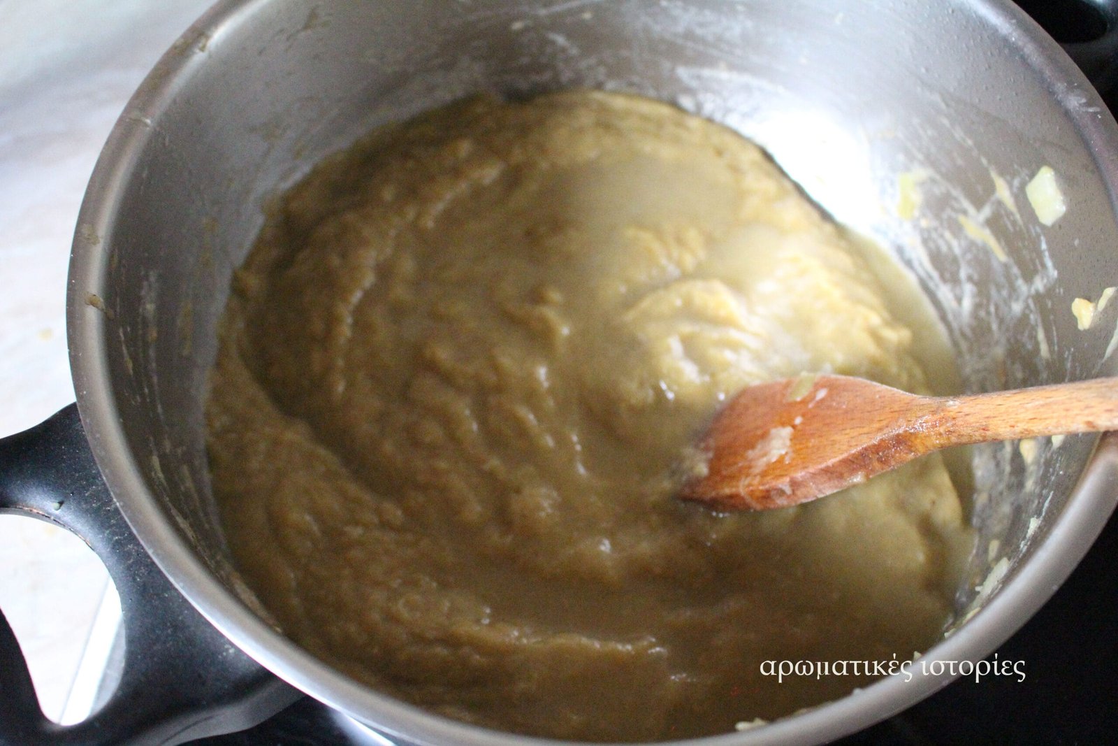 - Στραγγίζω καλά τα λαχανικά, κρατώ λίγο από το ζωμό τους και τα πολτοποιώ στον πολυκόφτη. Προσθέτω από το ζωμό που κράτησα για να επιτύχω τη σωστή υφή.