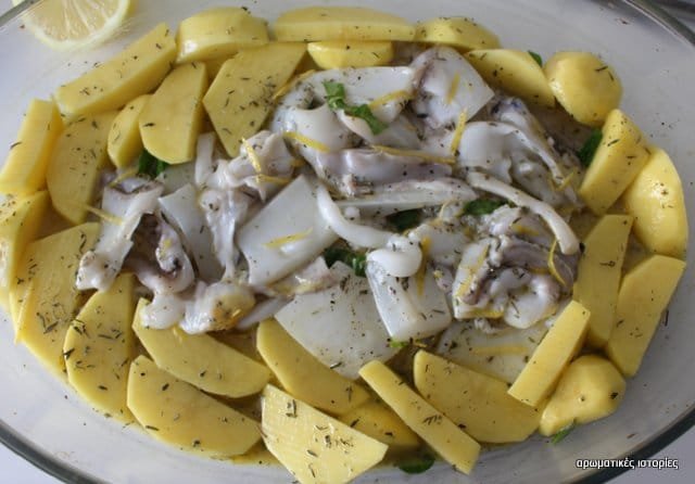 Σουπιά λεμονάτη στο φούρνο με πατάτες