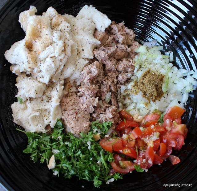 - Ψιλοκόβω τον μαϊντανό, ανακατεύω όλα μαζί τα υλικά και ζυμώνω.