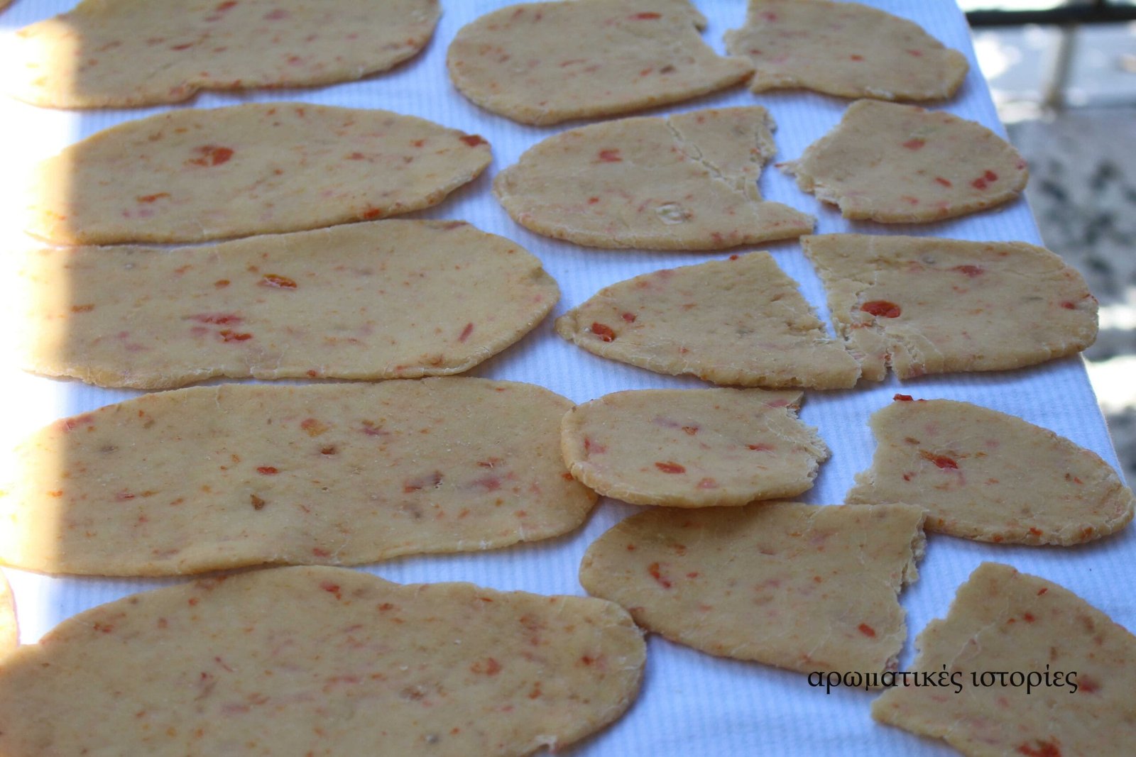 • Αφήνω τα κομμάτια να στεγνώσουν και μετά από 2 ώρες τα γυρίζω από την άλλη πλευρά. Ελέγχω τα πιτάκια κάθε τόσο για να δω αν στέγνωσαν καλά. Θα πρέπει να σπάνε εύκολα να κάνουν κρούστα και θόρυβο όταν τα αφήνεις να πέσουν από το χέρι σου. Θέλει 5-6 ώρες τουλάχιστον, εγώ βοήθησα την κατάσταση με έναν ανεμιστήρα.