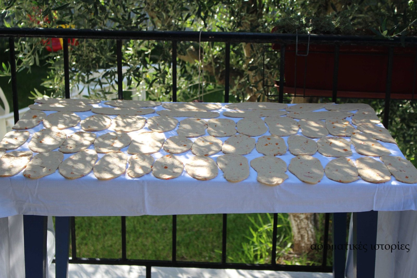• Απλώνω τον τραχανά ξανά στον αέρα πάνω στο τραπέζι όλο το απόγευμα.