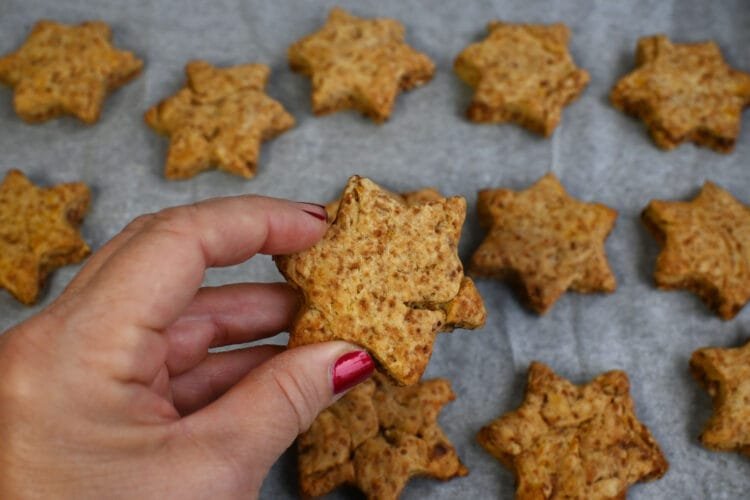 - Απλώνω το πρώτο φύλλο, το καλύπτω με τη γέμιση και το σκεπάζω με το δεύτερο. Με φορμάκι κόβω αστεράκια τα ακουμπώ πάνω σε λαδόχαρτο και τα βάζω να ψηθούν σε προθερμασμένο φούρνο στους 180ο για 30-35΄ για ένα τραγανό αποτέλεσμα. Αν θέλω να είναι πιο μαλακά τα ψήνω 25΄.