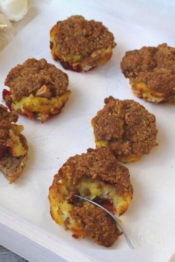 Μπακαλιάρος με κρούστα καρυδάτης σκορδαλιάς σε ψητά φορμάκια. Little cod muffins with a garlic crust.