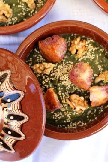 Ένα ελαφρύ πιάτο: Δυναμωτική σούπα με σπανάκι, πράσα, πασπαλισμένη με σουσάμι και καρύδια, λίγο πριν την ευθεία των λουκούλειων χριστουγεννιάτικων και πρωτοχρονιάτικων γευμάτων. Η σούπα συμπληρώνεται απαραιτήτως με μπουκίτσες ψωμιού που ραντίζονται με κόκκινο κρασί από ξινόμαυρο και ροδοκοκκινίζουν για λίγο στο φούρνο. Αν θέλετε μπορείτε να συνοδεύσετε τη σούπα με καπνιστό σκουμπρί ή καπνιστή […]