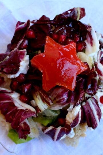 Ατομικές φρέσκιες γιορτινές σαλάτες με ανεβατό και κάππαρη. Little festive fresh salads with anevato cream cheese and capers.