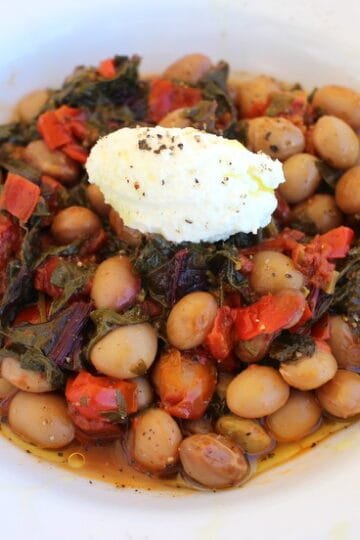 Χάντρες με φρέσκα παντζαρόφυλλα. Red kidney beans with fresh green beets leaves.