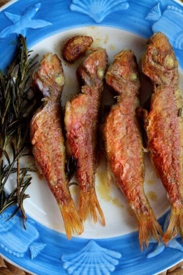 Μπαρμπουνάκια σαβόρο. Red mullet in the pan with rosemary, garlic and vinegar.