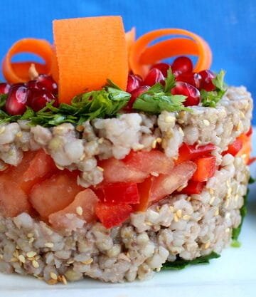 Φαγόπυρος με φρέσκα λαχανικά και αλοιφή γιαουρτιού με σουμάκι. Buckweat with fresh vegetables and yogurt-sumac sauce.