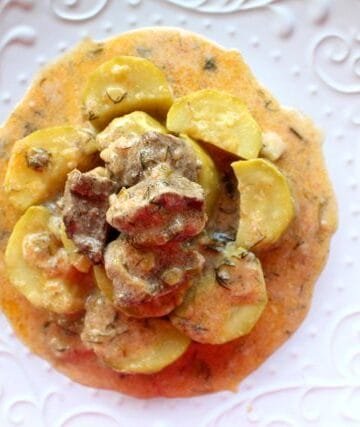 Αβγοκοφτό κοκκινιστό μπον φιλέ με κολοκυθάκια και άνηθο. Stew bon filet with zuccini, dill and lemon-tomato-egg sauce.