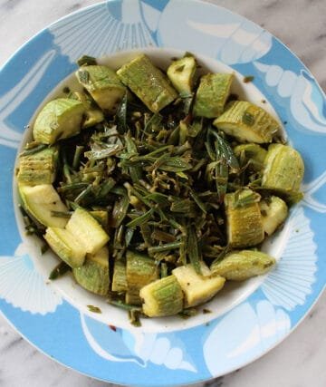 Κρίταμα και κολοκυθάκια βραστή σαλάτα. Boiled greens salad with sea fennel – kritama and zucchini.