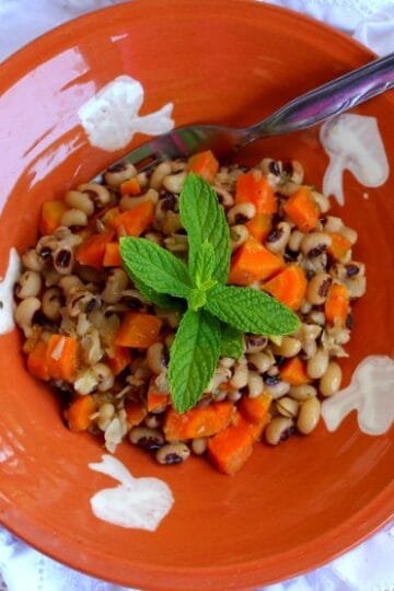 Μαυρομάτικα με λεμόνι, μέλι και δυόσμο. Black eye peas with lemon, honey and spearmint.