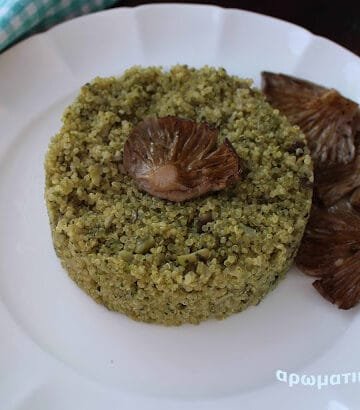 Κινόα με ψητά πλευρώτους μαριναρισμένα σε ρόφημα δίκταμου. Quinoa with grilled mushrooms marinated in Ditany of Crete.