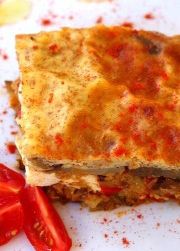 Μουσακάς χορτοφαγικός με σάλτσα μανιταριών