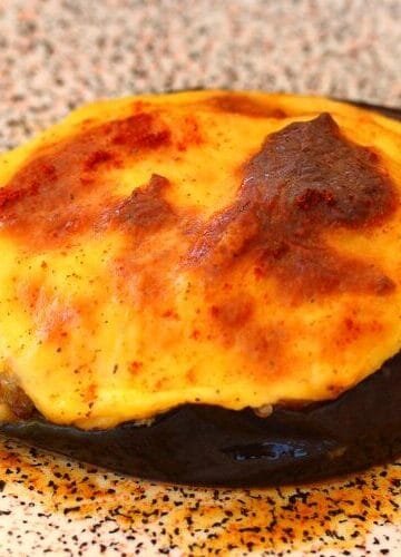 Μελιτζάνες παπουτσάκι με κουρκουμά και πάπρικα. Eggplant papoutsaki with curcuma and paprika.