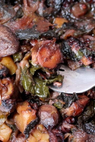 Μανιτάρια με φασκόμηλο, κράνα και ξινόμαυρο. Mushrooms with sage, cornelian cherries and red wine from the greek variety of xinomavro.