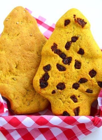 Έλατα ολικής με κουρκουμά, λιαστές και τσάι του βουνού. Wholemeal breads with turmeric, sun-dried tomatoes and mountain tea.